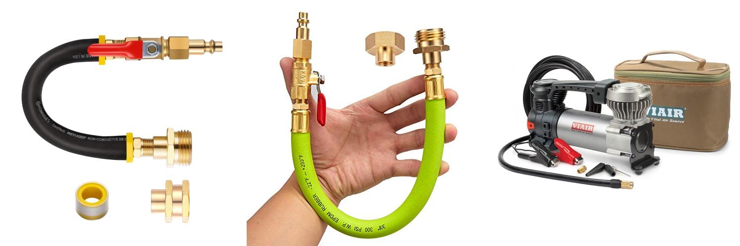 A: You will need a special RV air compressor adapter that connects to your RV’s fresh water inlet. This adapter allows you to safely connect the air hose.