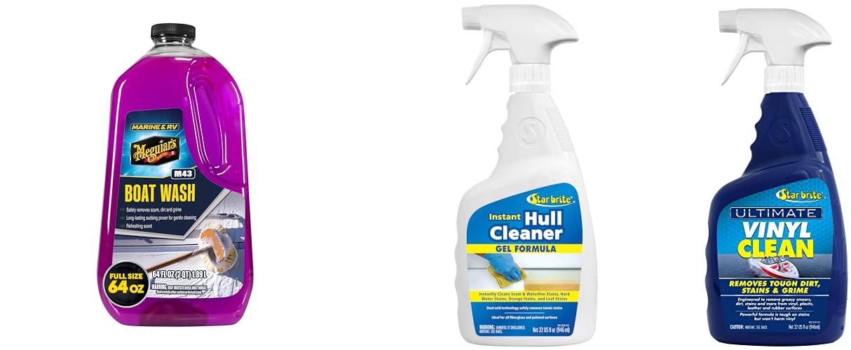 • Some cleaners work on different boat parts like fiberglass, vinyl, and metal.