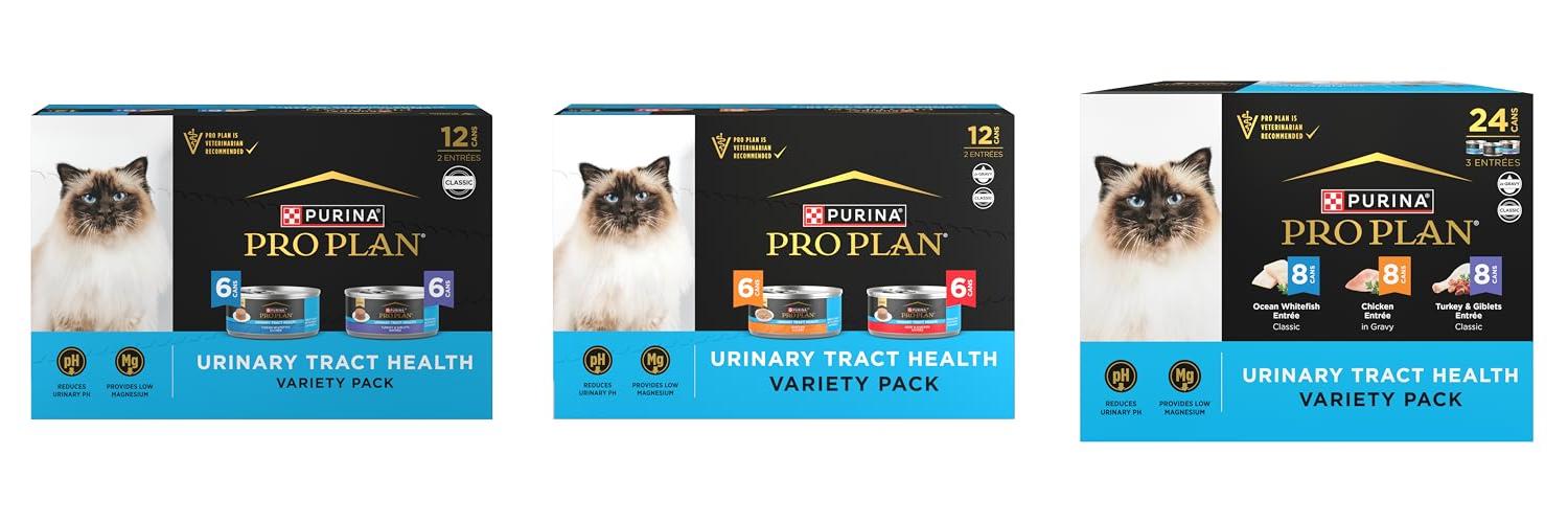 Purina Pro Plan Urinary Cat Food Wet Variety Pack Urinary Tract Health Ocean Whitefish, Chicken, Turkey and Giblets - (Pack of 24) 3 oz. Cans