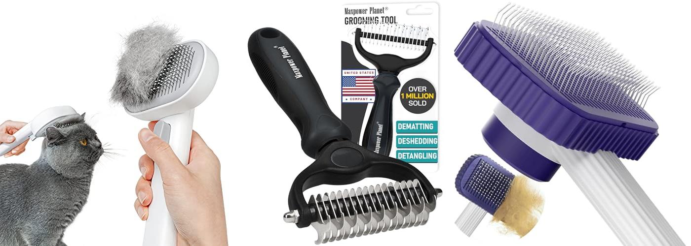 - This brush is an effective deshedding tool. It gently removes loose hair, dander, and dirt, making it great for pets with thick or double coats.