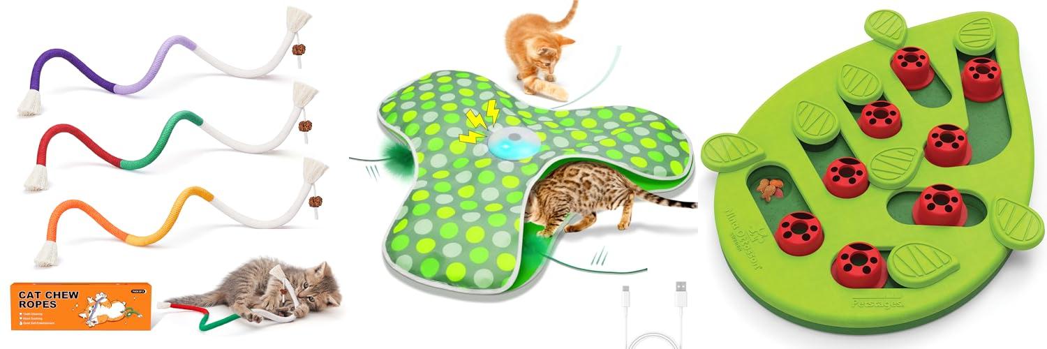 - Variety: Good enrichment offers different types of play. Look for items that combine climbing, scratching, hiding, and batting.