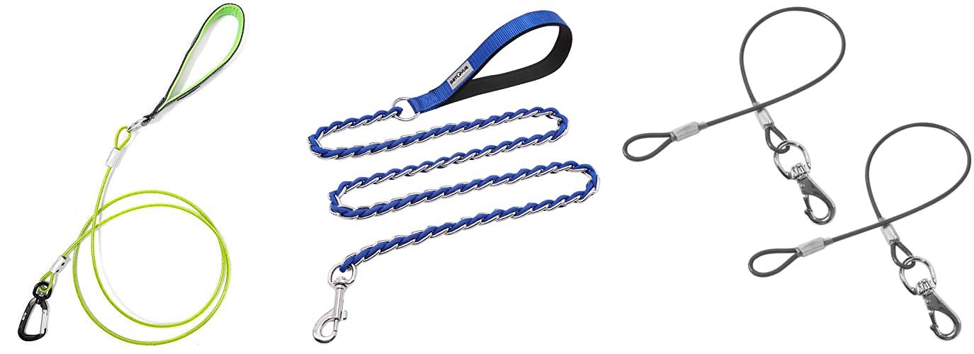 • Steel Cable: Steel cable is super strong. It is hard for dogs to chew through.