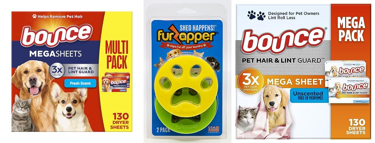 1. Bounce Pet Hair and Lint Guard Mega Dryer Sheets with 3X Pet Hair Fighters