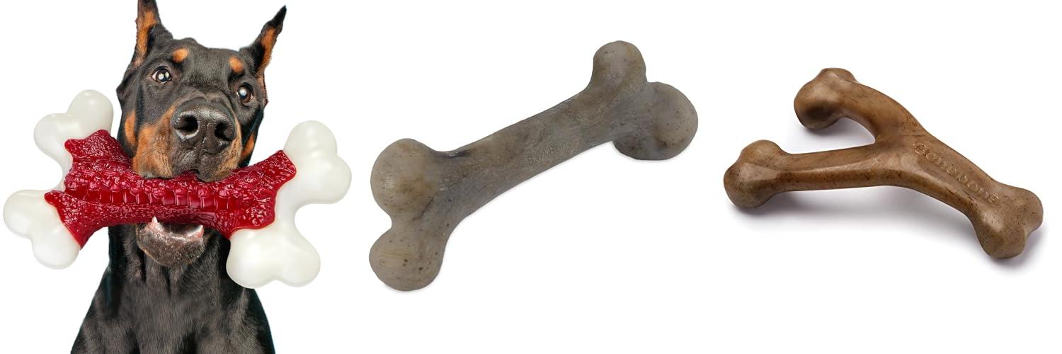 • Nylon: Nylon bones are very strong. They are great for aggressive chewers. They can be very durable but should be monitored.