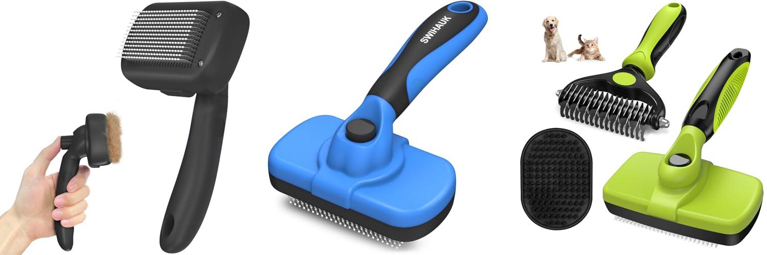 2. Swihauk Self Cleaning Slicker Brush – Skin Friendly Deshedding Grooming Tool for Dogs & Cats
