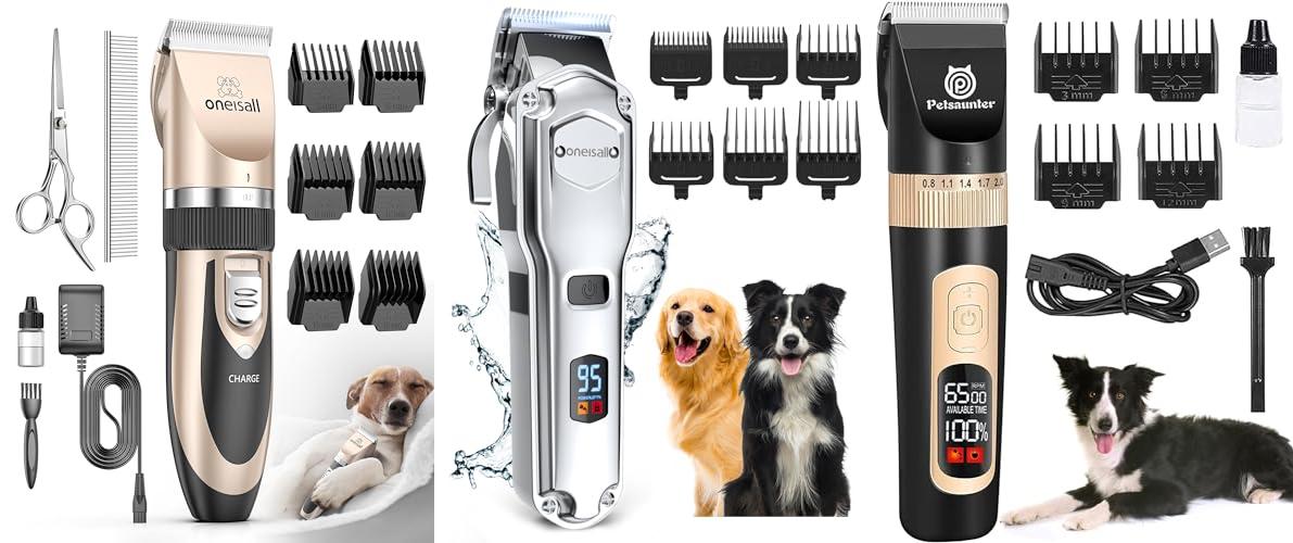 The oneisall Dog Clippers are made for grooming dogs with thick coats. These clippers have stainless steel blades that cut through thick and matted hair. They also have a low-noise motor so your dog won’t get scared. You can charge them with a USB cable. These clippers are also waterproof and easy to clean. They come with different sized combs for different hair lengths.