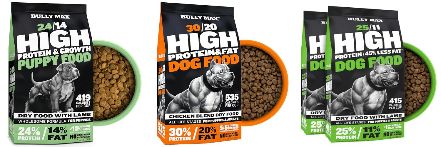 Looking for a dog food that helps your furry friend build muscle and gain weight? Bully Max Dry Dog Food is a top choice! This high-protein food is made for adult dogs and puppies. It has a lot of calories in each cup to give your dog energy. It’s designed to help dogs of all breeds and sizes. This food is made with good ingredients to keep your dog healthy and happy.