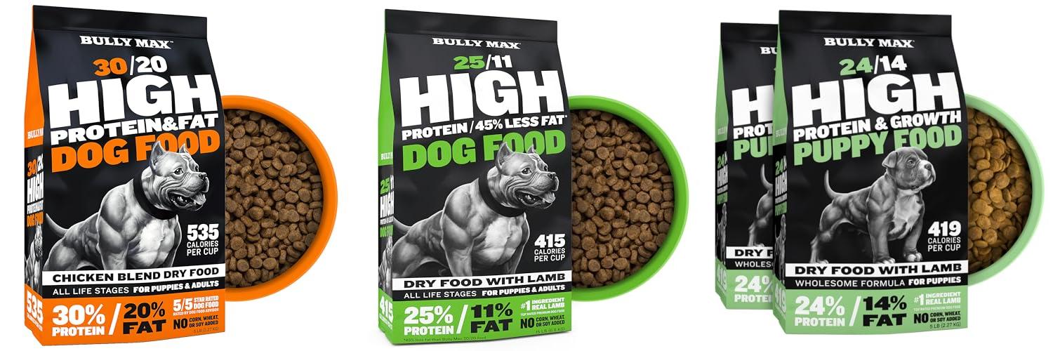 1. Bully Max Dry Dog Food for Adults & Pupppies – High Protein & Fat for Muscle & Weight Gain – High Performance Dog Food Supplements – Small & Large Breed Dogs (535 Calories Per Cup)