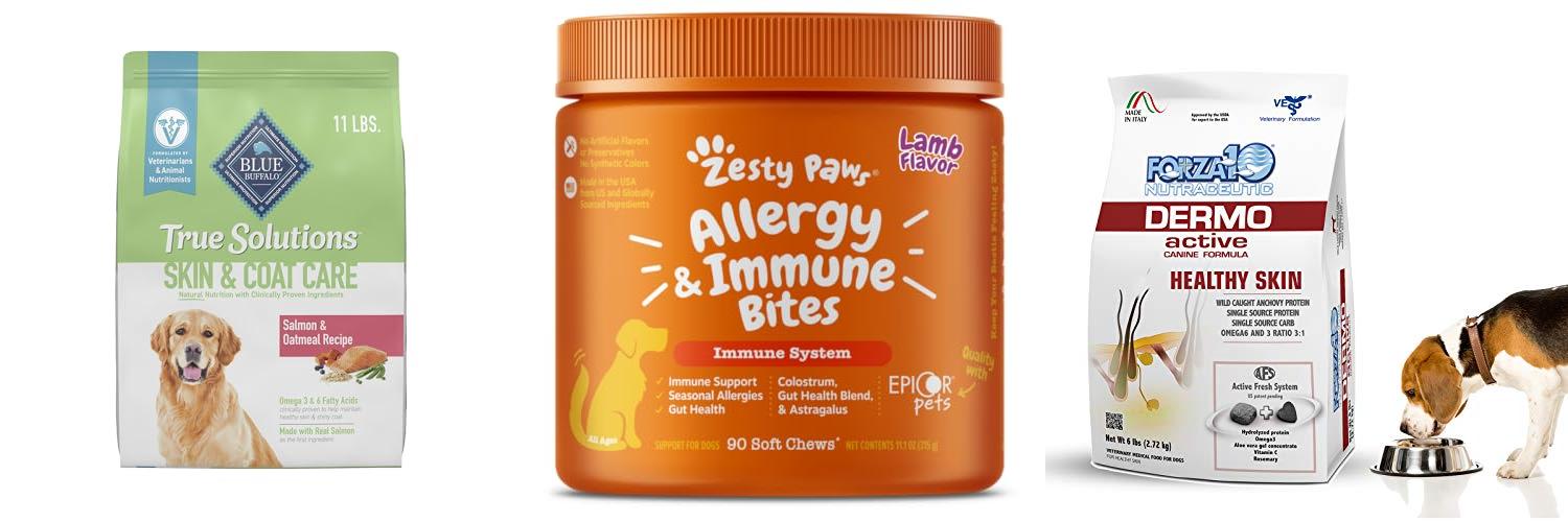 You want dog food that helps with itchy skin. Here’s what to look for: