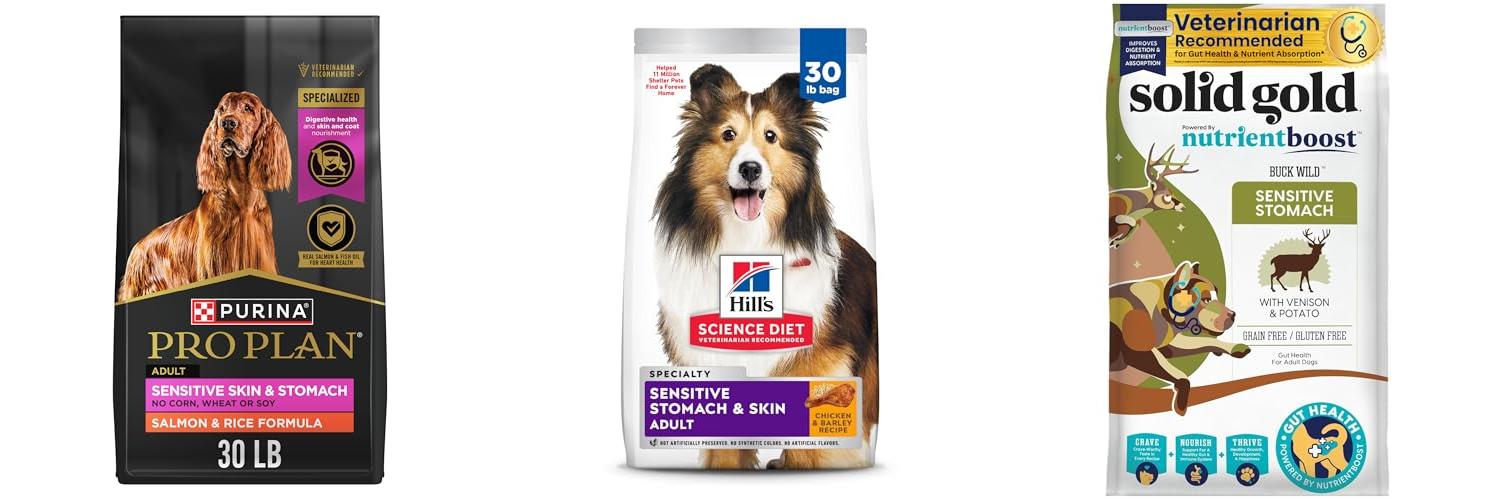 A: Look for limited ingredients, easily digestible proteins, prebiotics, probiotics, and fiber. Also, consider grain-free or limited-grain options.