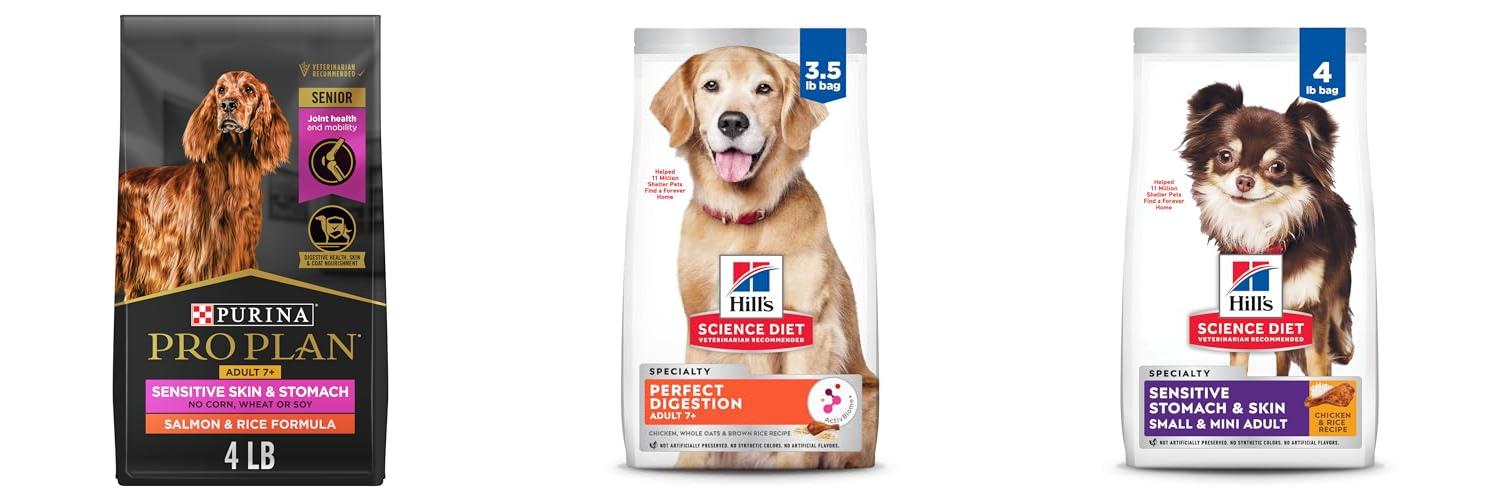 1. Purina Pro Plan Sensitive Skin and Stomach Dry Dog Food Senior Adult 7 Plus Salmon and Rice Formula – 4 lb. Bag