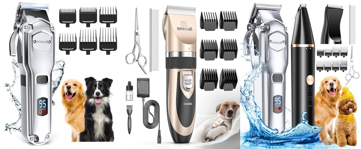 3. oneisall Dog Grooming Kit for Heavy Thick Hair&Coats/Low Noise Rechargeable Cordless Waterproof Dog Clippers for Grooming Animals&Pets/Pet Shaver with Stainless Steel Blade and Paw Trimmer
