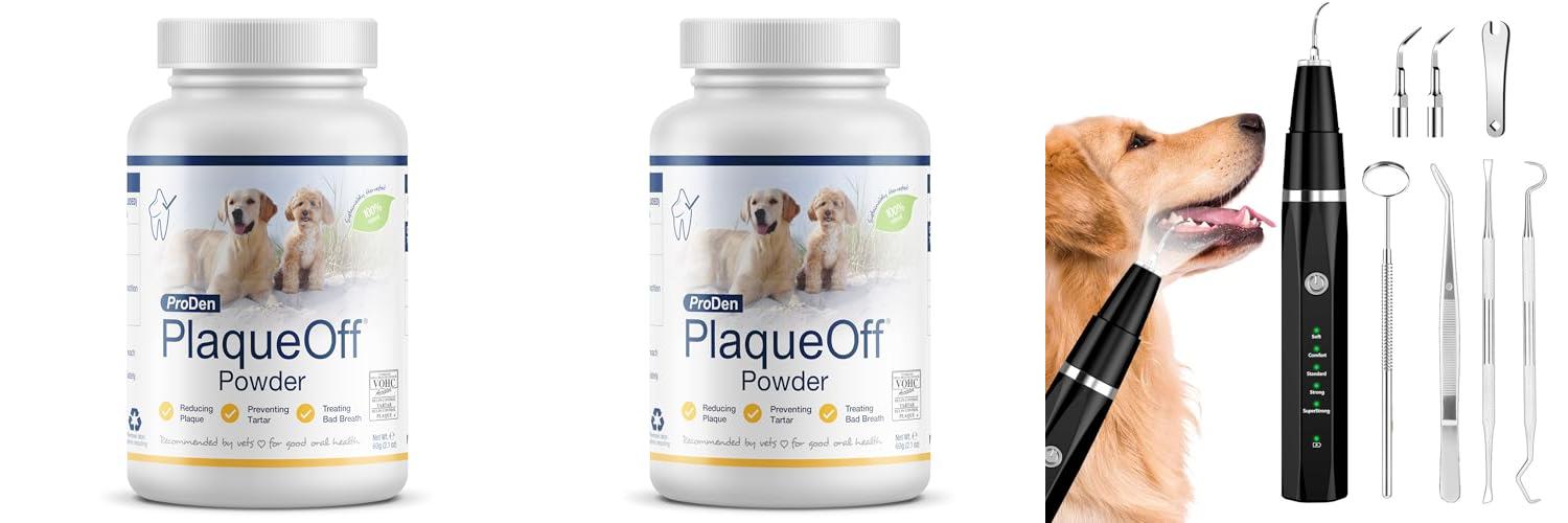 1. ProDen PlaqueOff Powder for Pets – Cat & Dog Breath Freshener – Plaque & Tartar Remover for Pet Oral Care – 60g