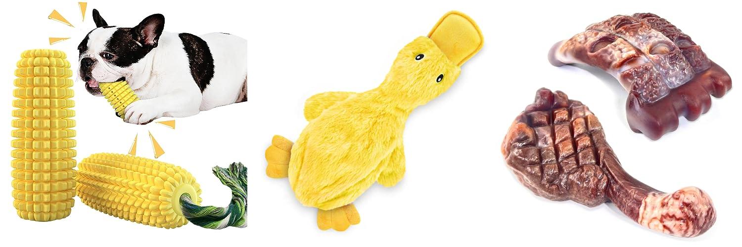 Dog Chew Toys for Aggressive Chewers,Corn Interactive Squeaky Dog Toys for Puppy Medium Breed,Tough Rubber Dental Chew Dog Toys