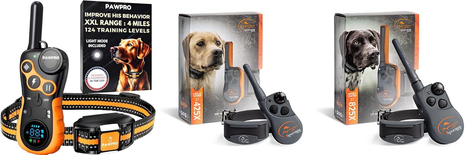 The SportDOG Brand SportHunter 825X is a dog training collar. It helps you train your dog from a distance. This collar has a range of up to half a mile. It is also waterproof and can go 25 feet underwater! You can choose from static, vibration, or tone options. The collar is rechargeable and lasts a long time.