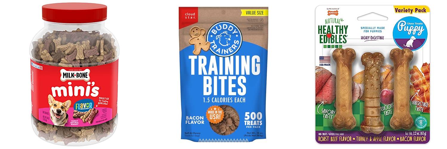 A: You can buy puppy treats at pet stores, online, and at some grocery stores.