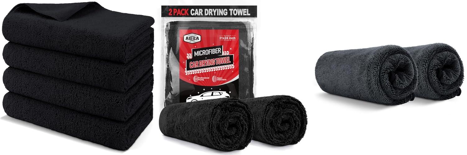 AIDEA Microfiber Towels for Cars-2PK, Large Professional Car Drying Towel, Scratch-Free & Absorbent Drying Towel for Cars, SUVs, RVs, Trucks, and Boats, 24inx 31in, Black