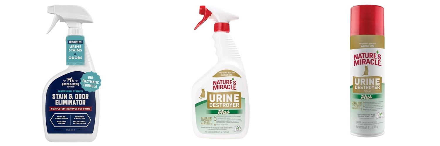 A: Enzyme cleaners contain special natural proteins called enzymes. These enzymes break down the odor-causing molecules in cat urine, like uric acid, into odorless substances.