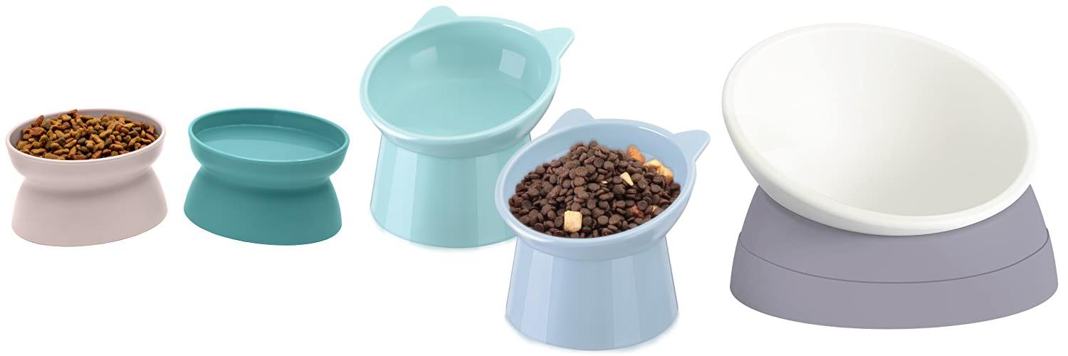 2. Zhehao 2 Pieces Plastic Raised Bowl Tilted 15 Degrees Elevated Cat Food and Water Bowls Set Anti Vomit Dog Kitten Food Dishes Pet for Cats and Small Dogs(Cat Ears