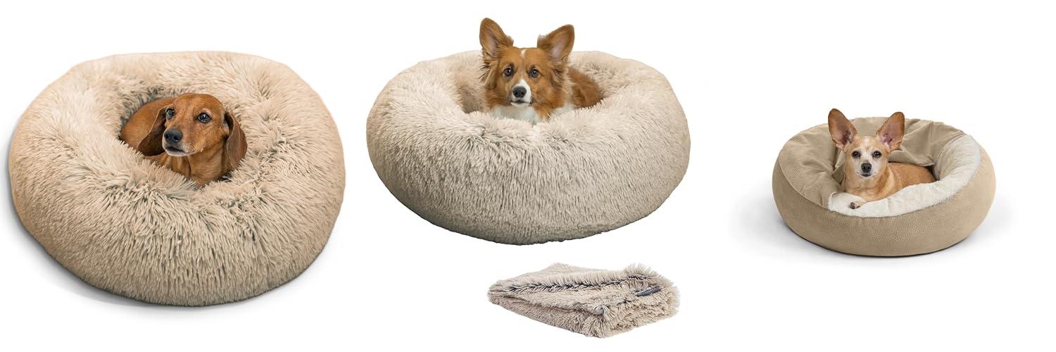 2. Best Friends by Sheri Bundle Set The Original Calming Shag Donut Cuddler Cat and Dog Bed + Pet Throw Blanket
