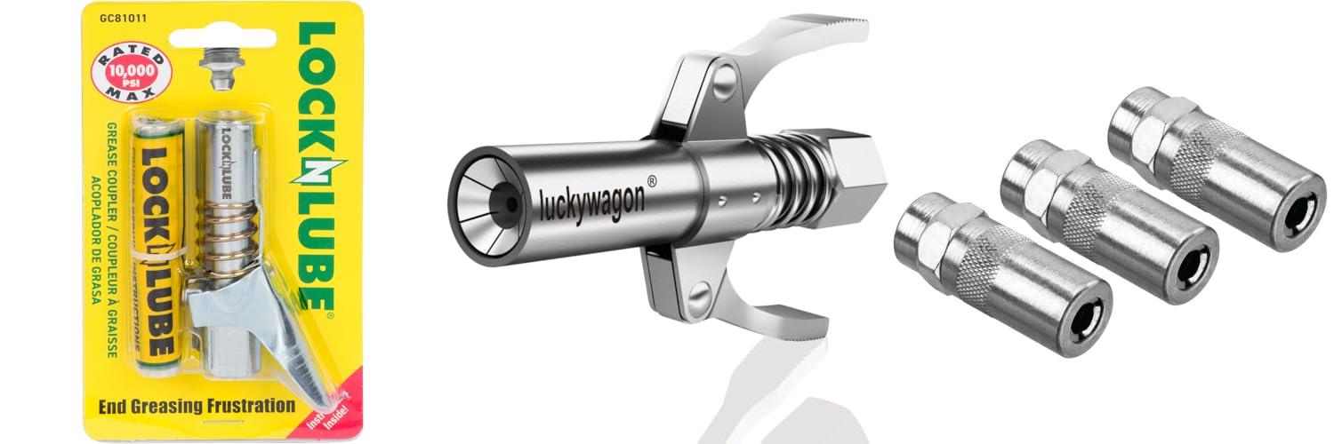 This LockNLube Grease Gun Coupler makes greasing easier and cleaner. You’ll save time and mess with this dependable tool.