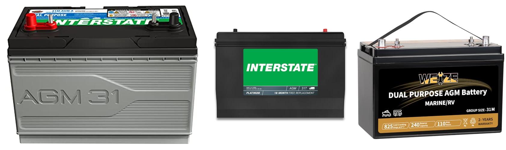 1. Interstate Batteries Marine/RV Battery 12V 100Ah 825CCA Dual Purpose Power Pure Lead AGM RV & Marine Starting Replacement Battery (Group Size 31M) Boats