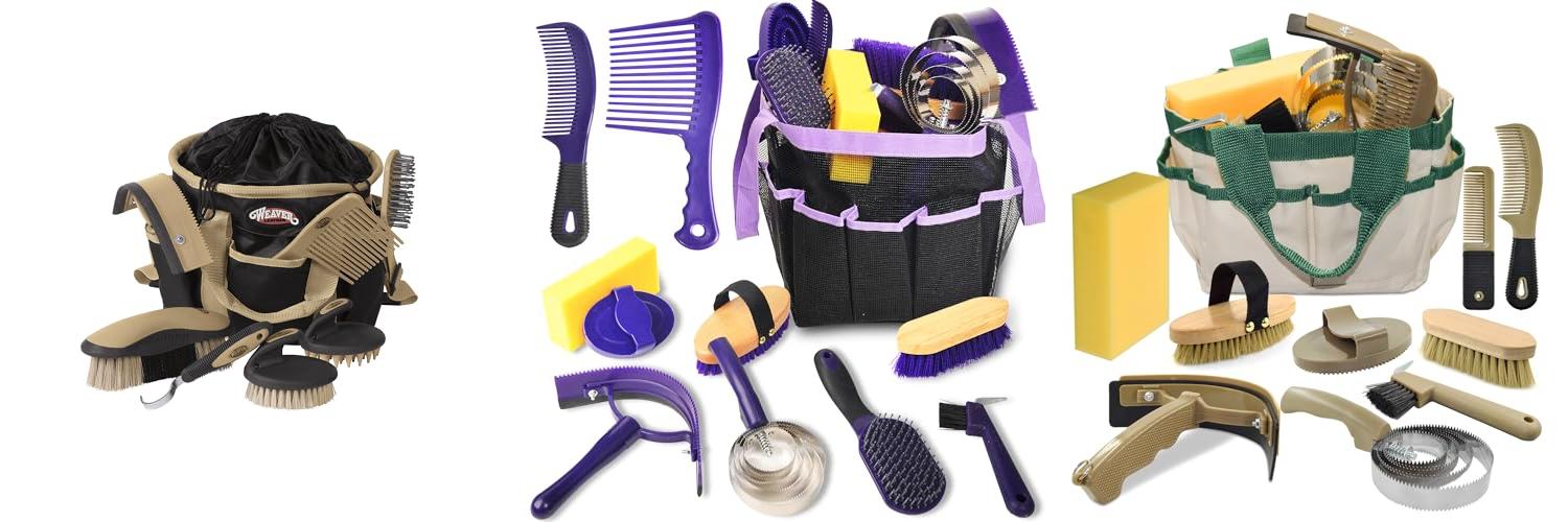 • The kit has a lot of tools. You get a comb, hoof pick, and brushes.