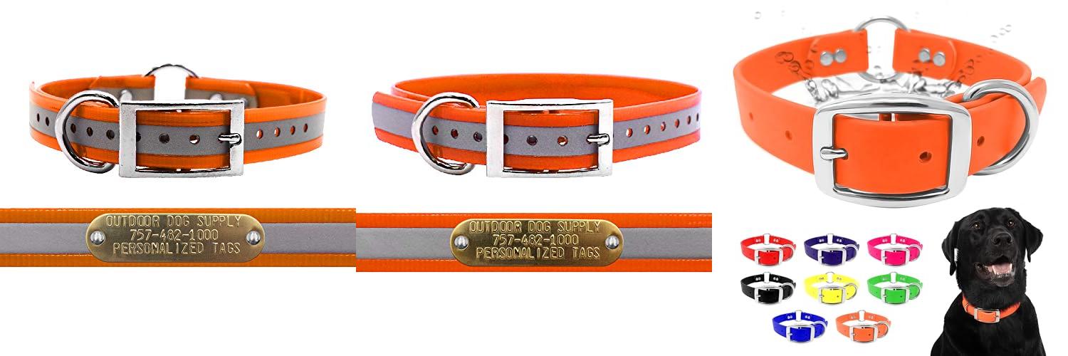 2. Outdoor Dog Supply’s 1″ Wide Reflective D Ring Dog Collar Strap with Custom Brass Name Plate (21″ Long