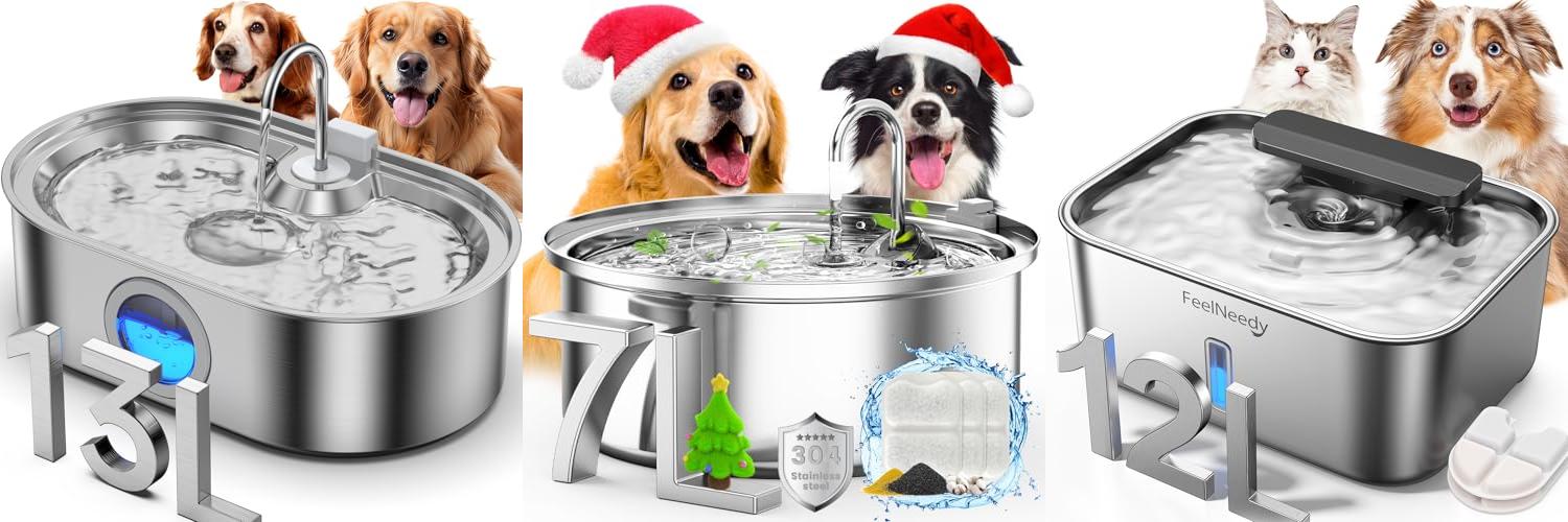 3. FEELNEEDY 3 Gal Stainless Steel Dog Water Fountain for Large Dog