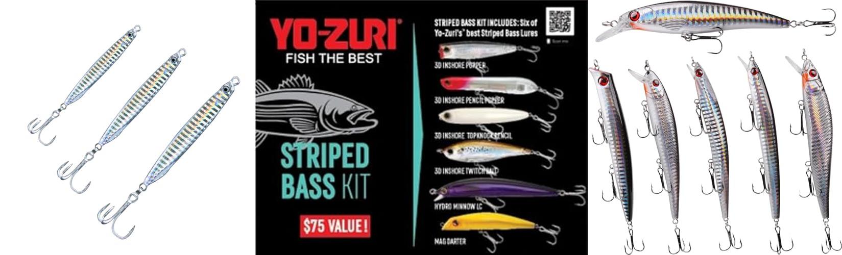 Ready to catch some big striped bass? The Yo-Zuri Striped Bass Kit gives you everything you need to get started. This kit has six awesome lures designed to work in different parts of the water. You get lures that swim underwater and lures that pop and splash on the surface. It’s a great way to figure out what the fish are biting on any given day.