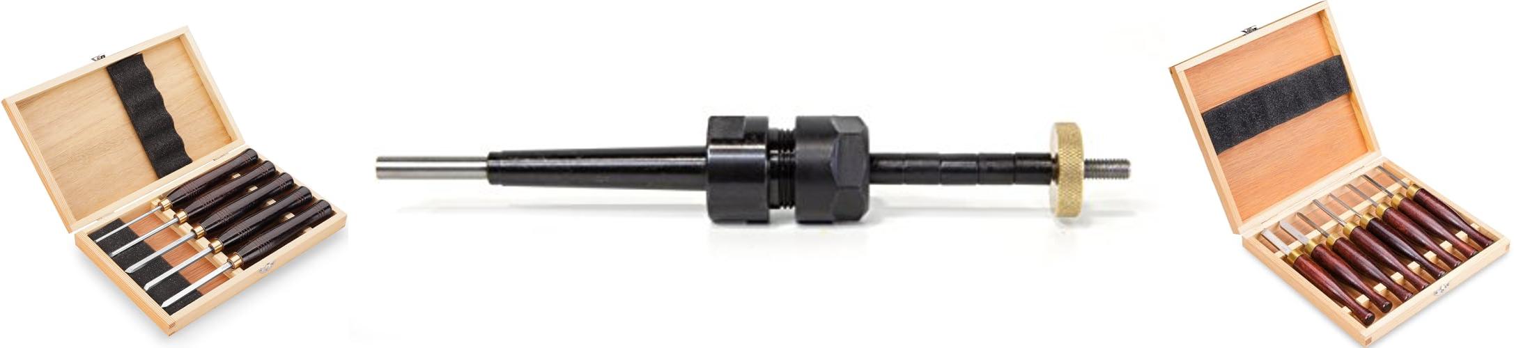 • Includes five essential mini chisels: Roughing Gouge, Spindle Gouge, Round-Nose Scraper, Parting Tool, and Skew Chisel.