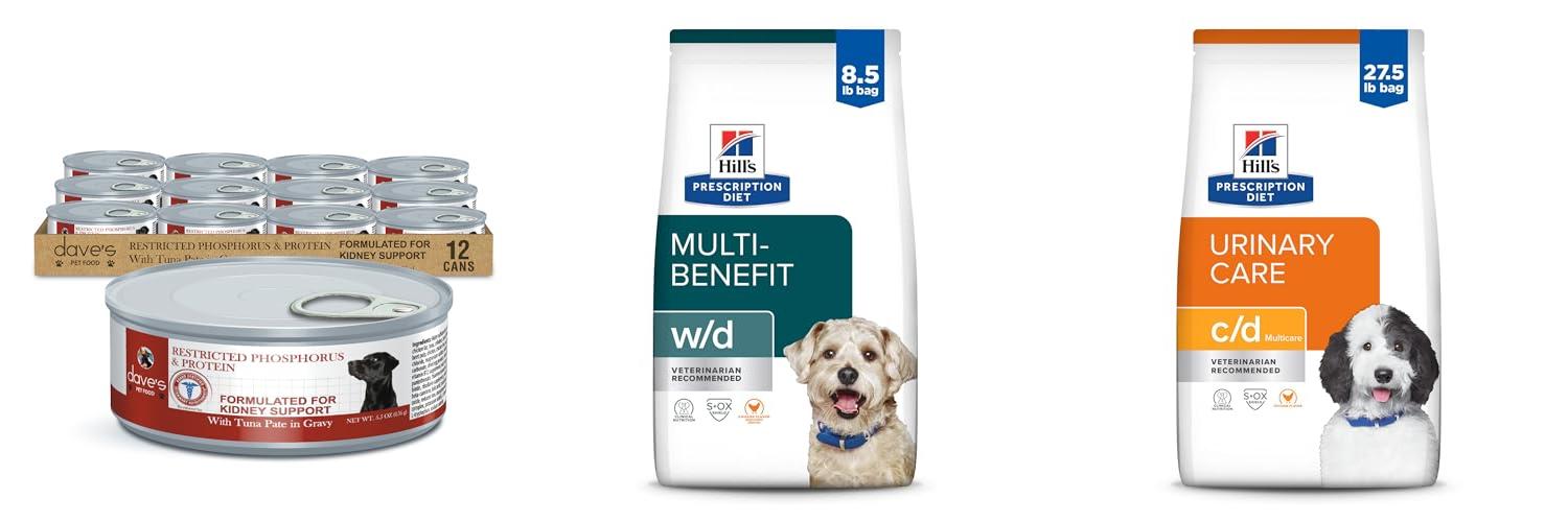 Dave’s Pet Food Kidney Care Dog Food (Tuna Pate) is made for dogs with kidney problems. It’s a wet food that is low in phosphorus. This helps to support your dog’s kidney health. The food comes in a tasty tuna pate flavor. It also has extra vitamins and minerals for your dog. You don’t need a prescription to buy it. This food is made by vets and nutritionists.