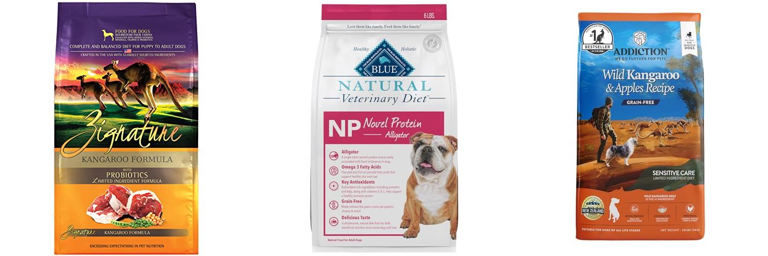 - Kangaroo meat is the first ingredient. It is a lean protein source.