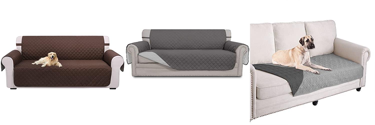 1. U-NICE HOME Reversible Sofa Cover Couch Cover for Dogs with Elastic Straps Water Repellent Furniture Protector for Pets Couch Cover for 3 Cushion Couch (Sofa