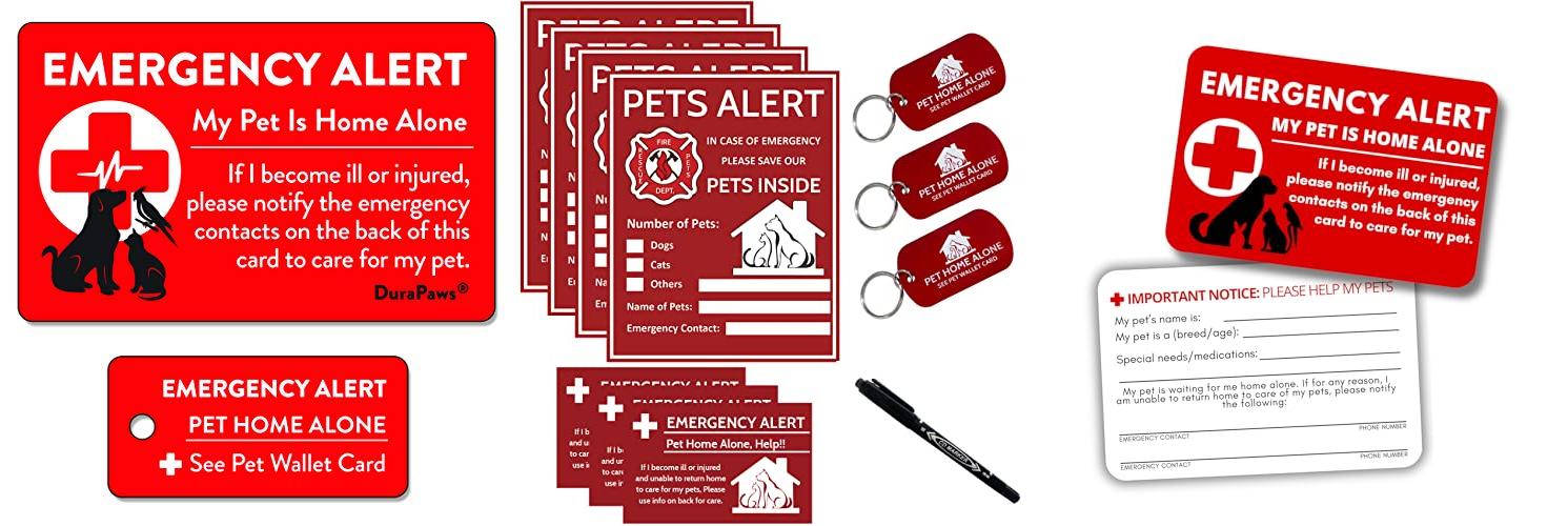 Are you worried about your pets when you are away from home? The DuraPaws My Pets are Home Alone Emergency Alert Card and Key Tag can help. This handy set gives first responders important information about your pets. If you are hurt, they can contact your emergency contacts. This helps your pets get the care they need.