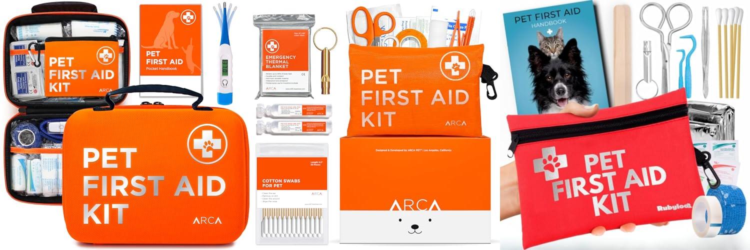 1. ARCA PET Cat & Dog First Aid Kit for Car – Pet Emergency Kit for Home Office Travel – Dog Camping Essentials with Digital Thermometer