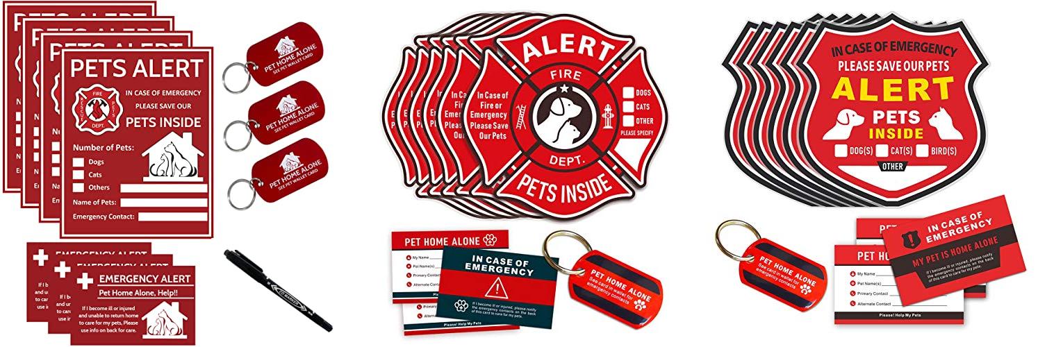 The Pet Alert Stickers kit is a must-have for pet owners. It helps keep your furry friends safe in case of an emergency. The kit includes window decals, wallet cards, and a key tag. These items alert first responders and others that pets are inside your home and need care.