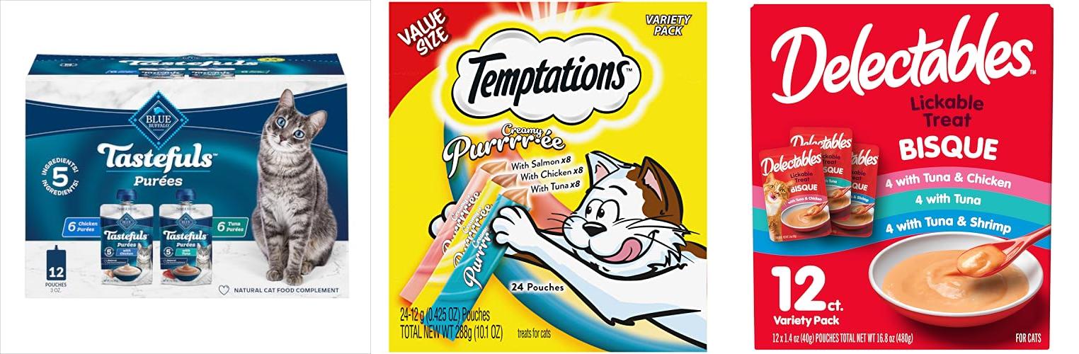 2. Temptations Creamy Puree Variety Pack of Squeezable Cat Treats