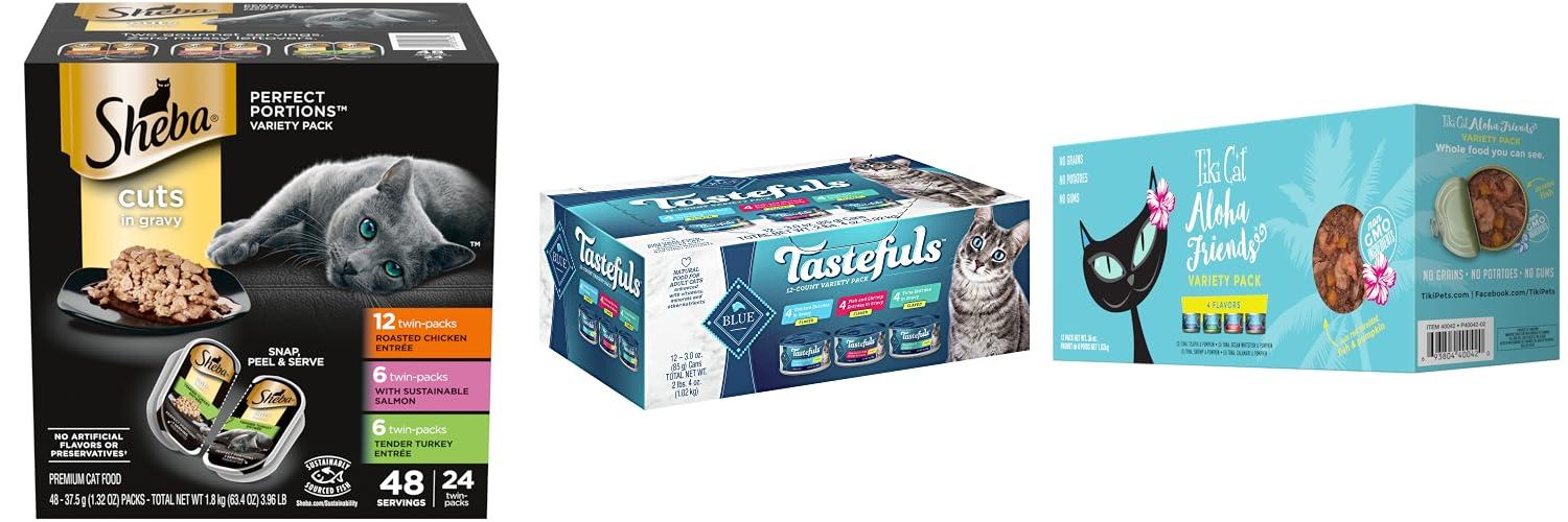 - The variety pack offers a great way to discover your cat’s favorite flavors.