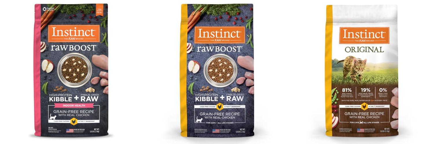 Instinct Original Dry Cat Food is a high-protein, grain-free option packed with real chicken. This food is designed to offer balanced nutrition for all cats, from kittens to adults. It stands out because each kibble piece is coated in freeze-dried raw ingredients, boosting both flavor and nutrition.