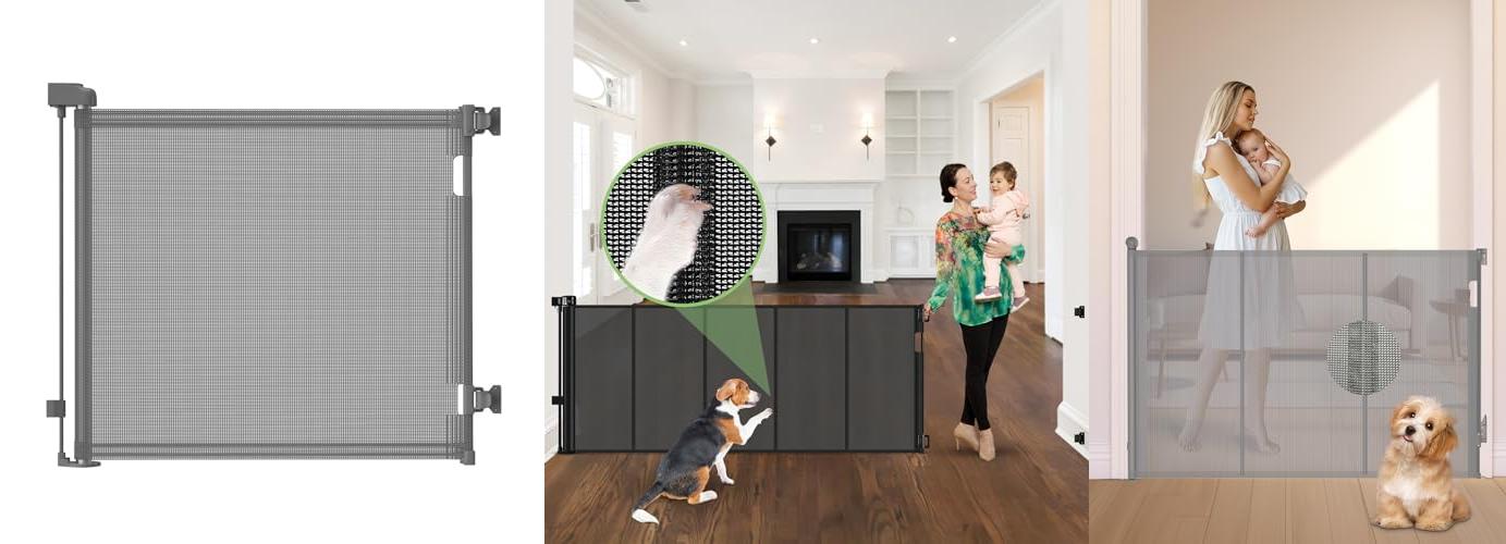 This retractable baby gate is a safe and practical solution. It offers convenience and peace of mind for parents and pet owners.