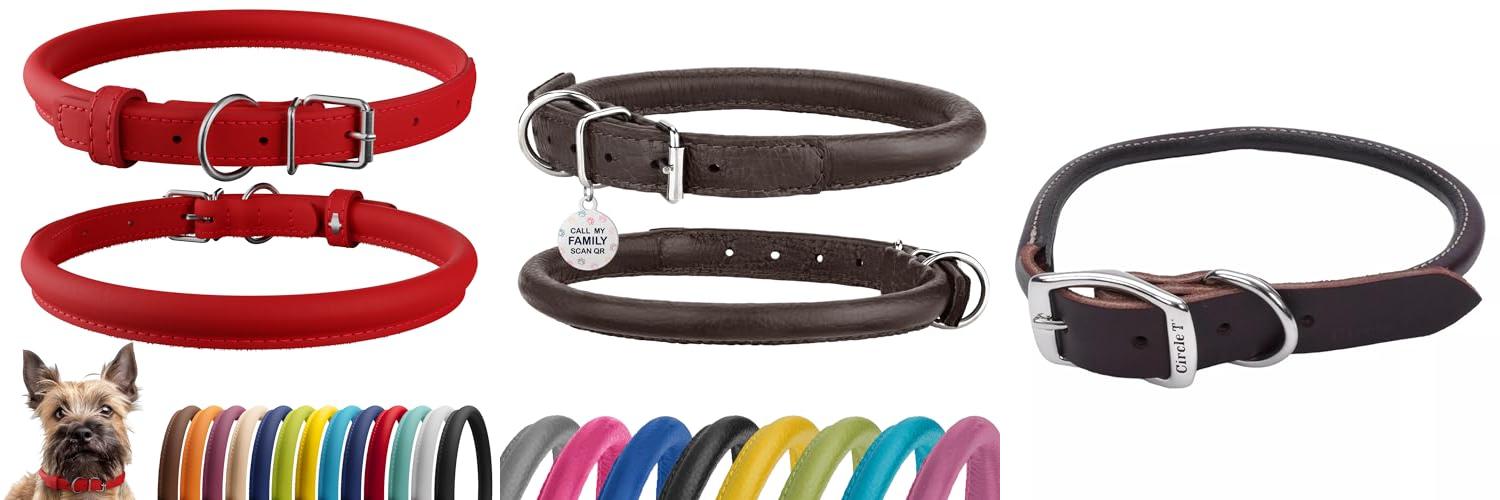 3. Coastal Pet Circle T Latigo Leather Round Dog Collar – Handcrafted Leather Pet Collar for Dogs – Comfortable for Dogs with Long Hair or Sensitive Skin – 3/8″ x 18″