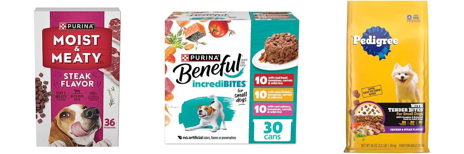 Purina Moist and Meaty Steak Flavor Soft Dog Food Pouches are a convenient choice. They are a good option for busy pet owners.
