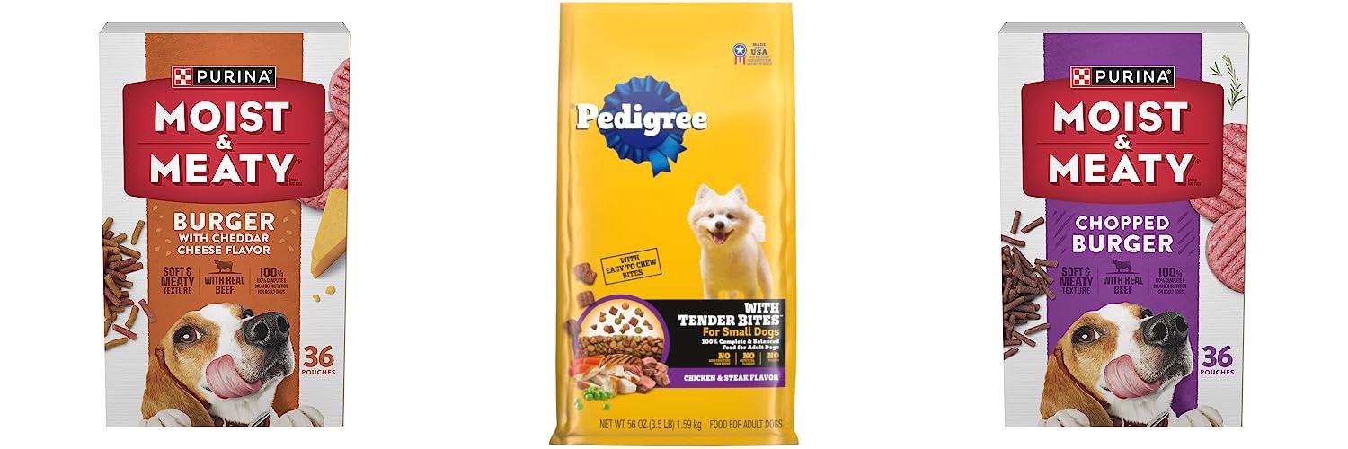3. Purina Moist and Meaty Dog Food Chopped Burger Soft Dog Food Pouches – 36 ct. Pouch