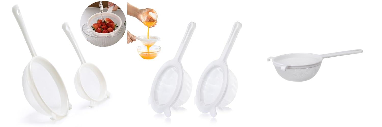 4. 3 Pcs Plastic Nylon Fine Mesh Kefir Strainer Set with Handle