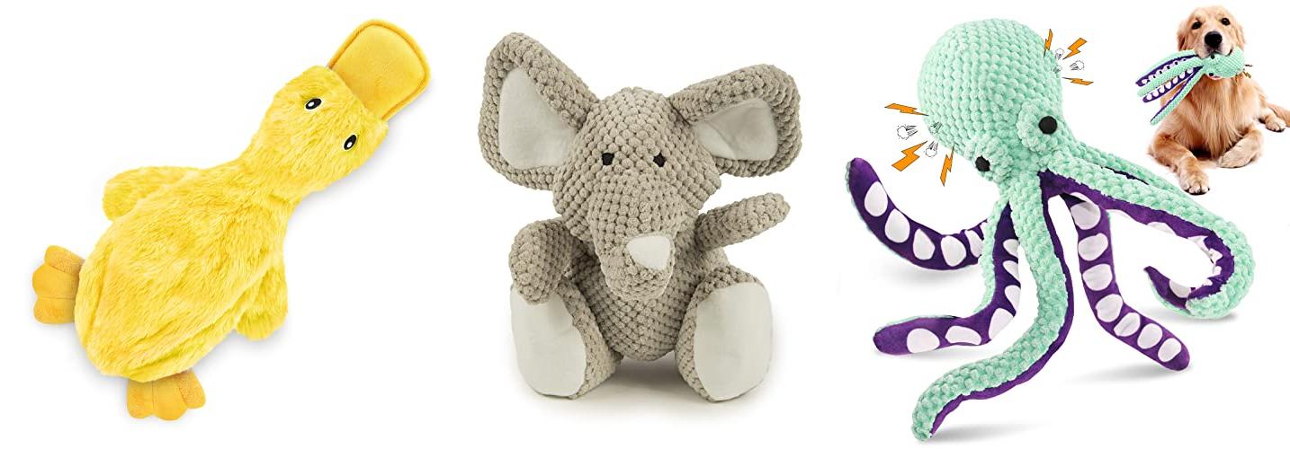 - These dog toys are soft and fun to chew.