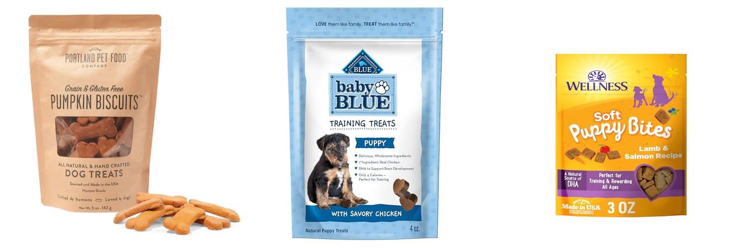 The ingredients in your puppy’s treats matter a lot. Here are some good materials to look for: