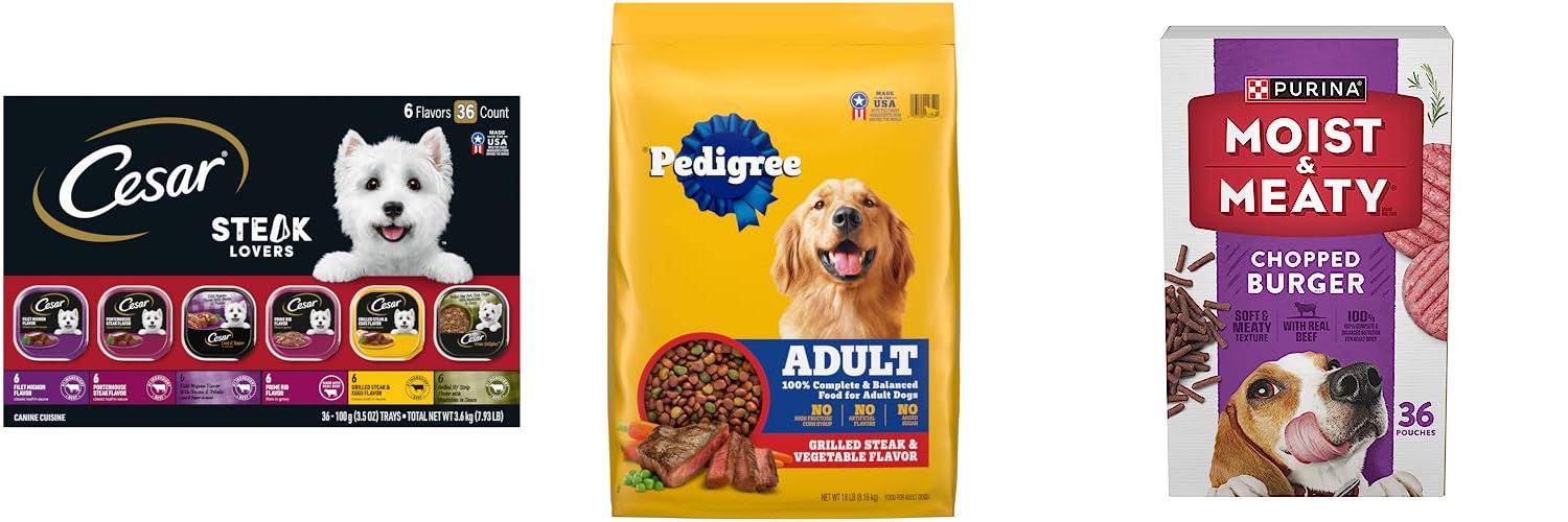 Purina Moist and Meaty Chopped Burger pouches are a good choice for busy pet parents. They offer a convenient and tasty way to feed your dog.