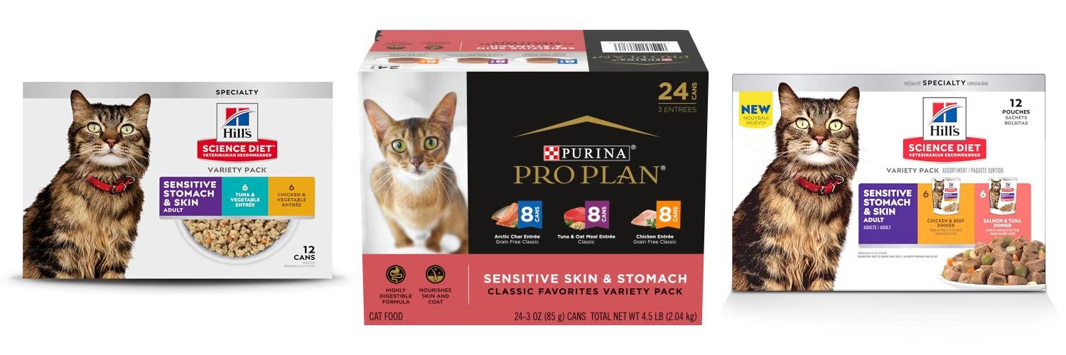 2. Purina Pro Plan Sensitive Skin and Stomach Wet Cat Food Variety Pack