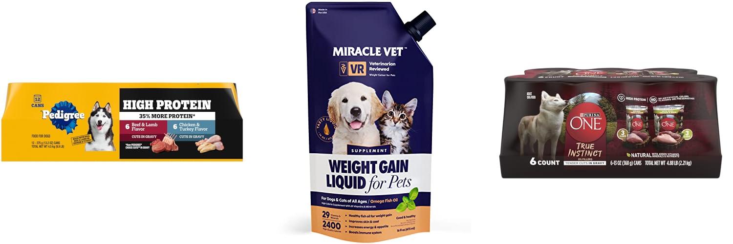 • High Calorie Content: This is super important! Look for food that packs a lot of calories in each serving. You want to help your dog get enough energy. The label should tell you how many calories are in each can or pouch.
